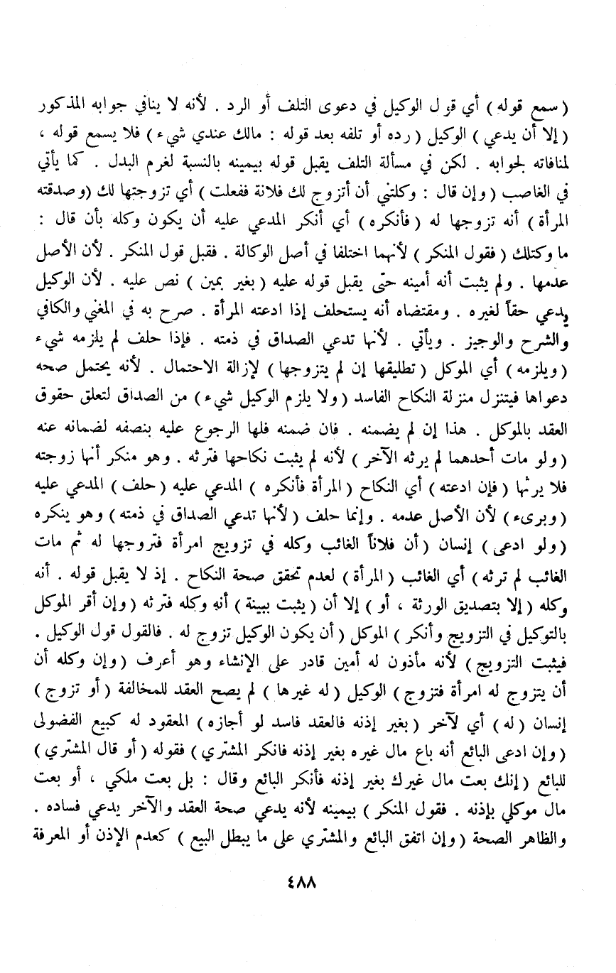 (سُمِعَ قَوْلُهُ) أَيْ قَوْلُ الْوَكِيلِ فِي دَعْوَى التَّلَفِ أَوْ الرَّدِّ لِأَنَّهُ لَا يُنَافِي جَوَابَهُ الْمَذْكُورَ (إلَّا أَنْ يَدَّعِيَ) الْوَكِيلُ (رَدَّهُ أَوْ تَلَفَهُ بَعْدَ قَوْلِهِ: مَا لَكَ عِنْدِي شَيْءٌ) فَلَا يُسْمَعُ قَوْلُهُ، لِمُنَافَاتِهِ لِجَوَابِهِ لَكِنْ فِي مَسْأَلَةِ التَّلَفِ يُقْبَلُ قَوْلُهُ بِيَمِينِهِ بِالنِّسْبَةِ لِغُرْمِ الْبَدَلِ كَمَا يَأْتِي فِي الْغَاصِبِ.
