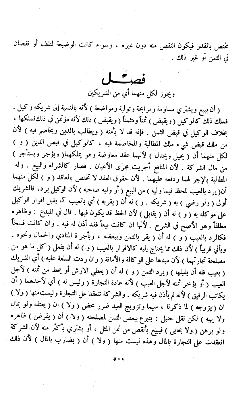 [فَصْلٌ يَجُوز لِكُلٍّ مِنْ الشَّرِيكَيْنِ أَنْ يَبِيعَ وَيَشْتَرِي]