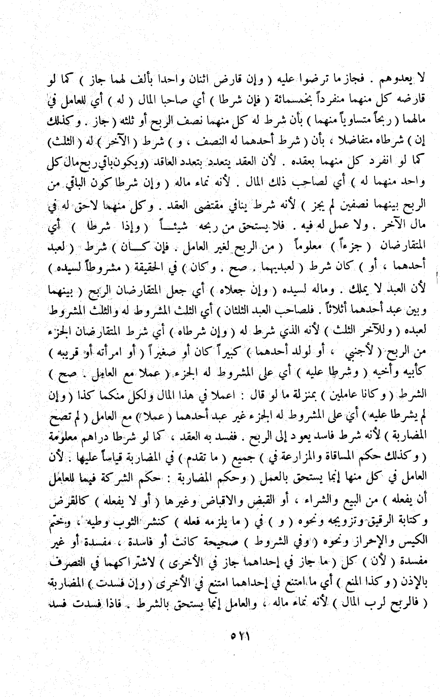 (وَحُكْمُ الْمُضَارَبَةِ: حُكْمُ الشَّرِكَةِ فِيمَا لِلْعَامِلِ أَنْ يَفْعَلَهُ) مِنْ الْبَيْعِ وَالشِّرَاءِ، أَوْ الْقَبْضِ وَالْإِقْبَاضِ وَغَيْرِهَا (أَوْ لَا يَفْعَلُهُ) كَالْقَرْضِ، وَكِتَابَةِ الرَّقِيقِ وَتَزْوِيجِهِ وَنَحْوِهِ (وَ) فِي (مَا يَلْزَمُهُ فِعْلُهُ) كَنَشْرِ الثَّوْبِ وَطَيِّهِ، وَخَتْمِ الْكِيسِ وَالْإِحْرَازِ وَنَحْوِهِ.