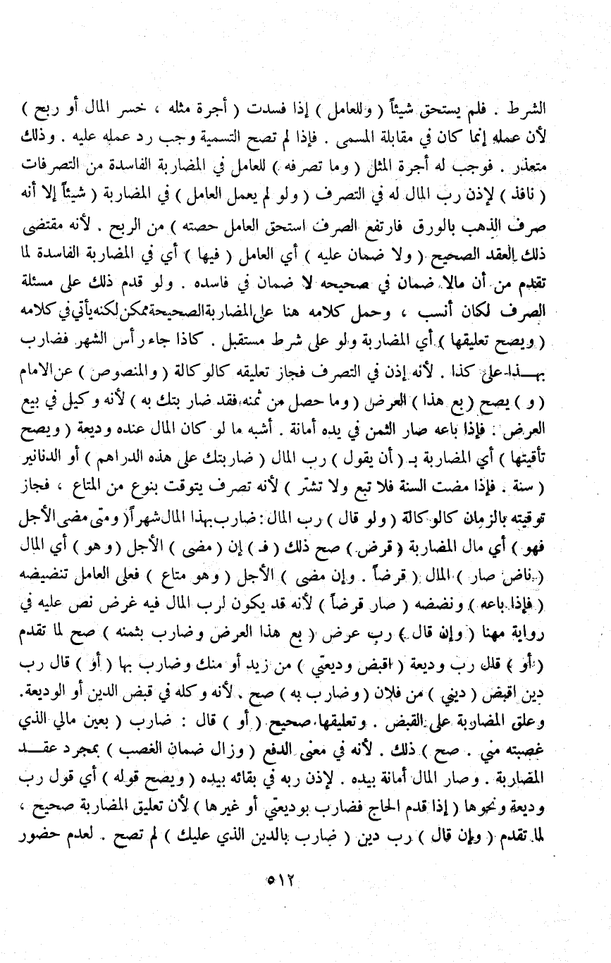 (وَلَا ضَمَانَ عَلَيْهِ) أَيْ الْعَامِلِ (فِيهَا) أَيْ فِي الْمُضَارَبَةِ الْفَاسِدَةِ لِمَا تَقَدَّمَ مِنْ أَنَّ مَا لَا ضَمَانَ فِي صَحِيحِهِ لَا ضَمَانَ فِي فَاسِدِهِ وَلَوْ قُدِّمَ ذَلِكَ عَلَى مَسْأَلَةِ الصَّرْفِ لَكَانَ أُنْسَبَ، وَحَمْلُ كَلَامَهُ هُنَا عَلَى الْمُضَارَبَةِ الصَّحِيحَةِ مُمْكِنٌ لَكِنَّهُ يَأْتِي فِي كَلَامِهِ.