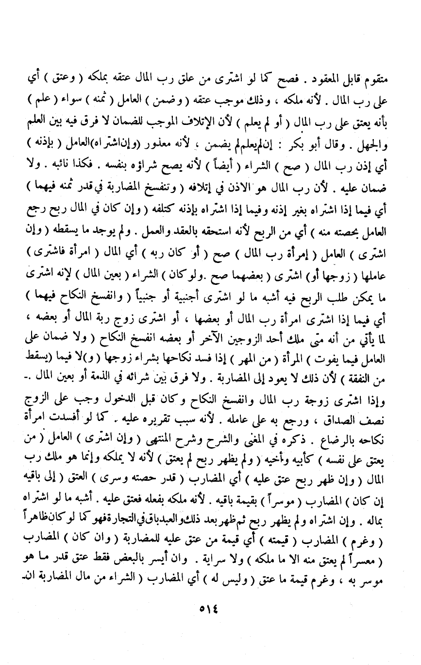 مُتَقَوِّمٌ قَابَلَ الْمَعْقُودَ فَصَحَّ كَمَا لَوْ اشْتَرَى مَنْ عَلَّقَ رَبُّ الْمَالِ عِتْقَهُ بِمِلْكِهِ (وَعَتَقَ) أَيْ عَلَى رَبِّ الْمَالِ؛ لِأَنَّهُ مَلَكَهُ، وَذَلِكَ مُوجِبُ عِتْقِهِ (وَضَمِنَ) الْعَامِلُ (ثَمَنَهُ) سَوَاءٌ (عَلِمَ) بِأَنَّهُ يَعْتِقُ عَلَى رَبِّ الْمَالِ (أَوْ لَمْ يَعْلَمْ) ؛ لِأَنَّ الْإِتْلَافَ الْمُوجِبَ لِلضَّمَانِ لَا فَرْقَ فِيهِ بَيْنَ الْعِلْمِ وَالْجَهْلِ.
