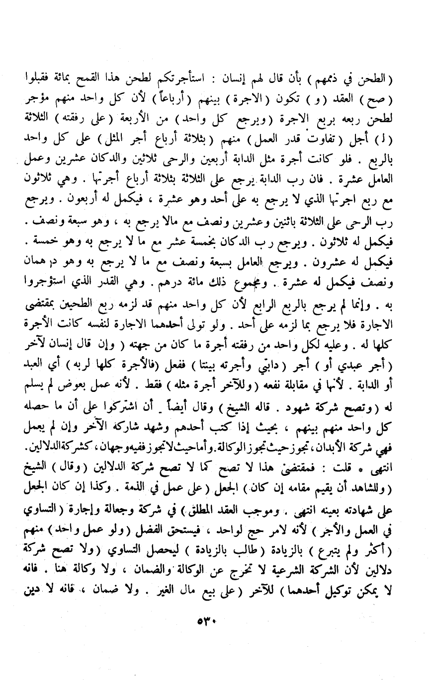 وَيَرْجِعُ رَبُّ الرَّحَى عَلَى الثَّلَاثَةِ بِاثْنَيْنِ وَعِشْرِينَ وَنِصْفٍ مَعَ مَا لَا يَرْجِعُ بِهِ، وَهُوَ سَبْعَةٌ وَنِصْفٌ فَيَكْمُلُ لَهُ ثَلَاثُونَ وَيَرْجِعُ رَبُّ الدُّكَّانِ بِخَمْسَةَ عَشَرَ مَعَ مَا لَا يَرْجِعُ بِهِ وَهُوَ خَمْسَةٌ فَيَكْمُلُ لَهُ عِشْرُونَ وَيَرْجِعُ الْعَامِلُ بِسَبْعَةٍ وَنِصْفٍ مَعَ مَا لَا يَرْجِعُ بِهِ وَهُوَ دِرْهَمَانِ وَنَصْفٌ فَيَكْمُلُ لَهُ عَشَرَةٌ وَمَجْمُوعُ ذَلِكَ مِائَةُ دِرْهَمٍ وَهِيَ الْقَدْرُ الَّذِي اُسْتُؤْجِرُوا بِهِ.