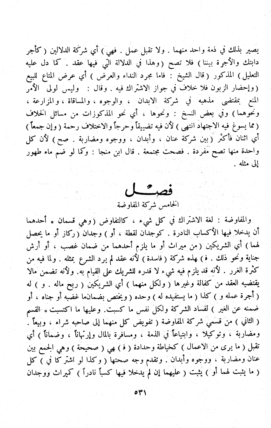 فَصْلٌ (الْخَامِسُ شَرِكَةُ الْمُفَاوَضَةِ) .