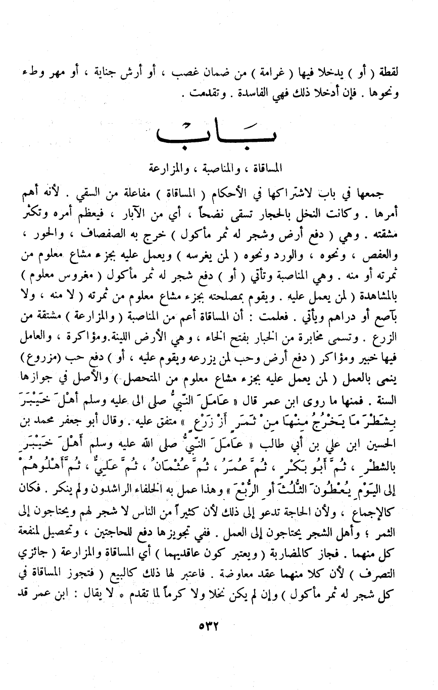 [بَابُ الْمُسَاقَاةِ وَالْمُنَاصَبَةِ وَالْمُزَارَعَةِ]