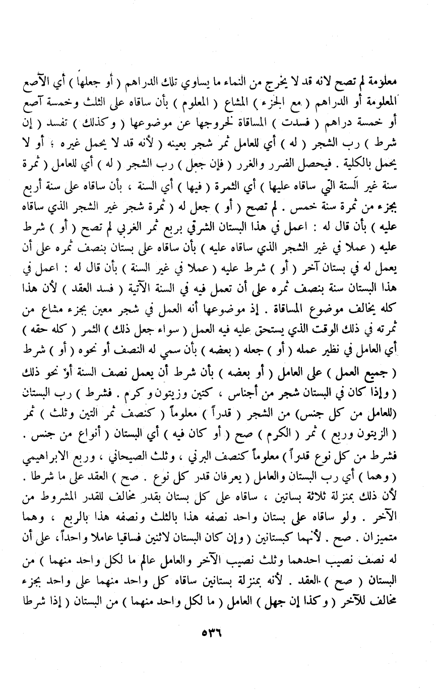 مَعْلُومَةً لَمْ تَصِحَّ؛ لِأَنَّهُ قَدْ لَا يَخْرُجُ مِنْ النَّمَاءِ مَا يُسَاوِي تِلْكَ الدَّرَاهِمَ (أَوْ جَعَلَهَا) أَيْ الْآصُعَ الْمَعْلُومَةَ أَوْ الدَّرَاهِمَ (مَعَ الْجُزْءِ) الْمُشَاعِ (الْمَعْلُومِ) بِأَنْ سَاقَاهُ عَلَى الثُّلُثِ وَخَمْسَةِ آصُعٍ أَوْ خَمْسَةِ دَرَاهِمَ (فَسَدَتْ) الْمُسَاقَاةُ لِخُرُوجِهَا عَنْ مَوْضُوعِهَا (وَكَذَلِكَ) تَفْسُدُ (إنْ شَرَطَ) رَبُّ الشَّجَرِ (لَهُ) أَيْ لِلْعَامِلِ (ثَمَرَ شَجَرٍ بِعَيْنِهِ) ؛ لِأَنَّهُ قَدْ لَا يَحْمِلُ غَيْرَهُ أَوْ لَا يَحْمِلُ بِالْكُلِّيَّةِ فَيَحْصُلُ الضَّرَرُ وَالْغَرَرُ.
