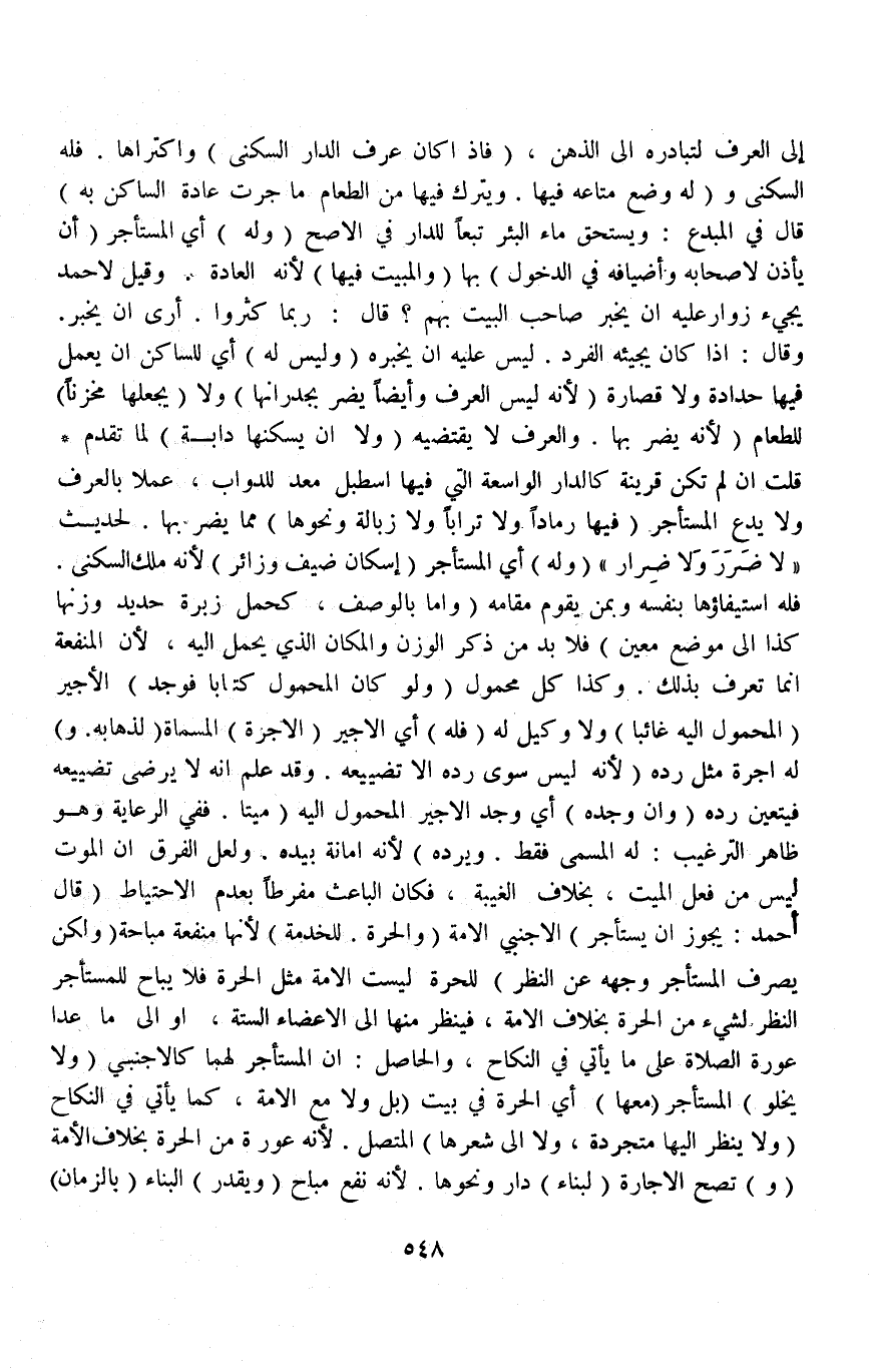 (وَلَيْسَ لَهُ) أَيْ لِلسَّاكِنِ (أَنْ يَعْمَلَ فِيهَا حِدَادَةً وَلَا قِصَارَةً) ؛ لِأَنَّهُ لَيْسَ الْعُرْفَ وَأَيْضًا يَضُرُّ بِجُدْرَانِهَا (وَلَا) يَجْعَلُهَا (مَخْزَنًا لِلطَّعَامِ) ؛؛ لِأَنَّهُ يَضُرُّ بِهَا وَالْعُرْفُ لَا يَقْتَضِيهِ.