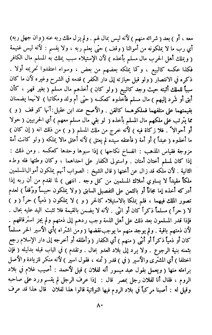 (قَالَ الشَّيْخُ: الصَّوَابُ أَنَّهُمْ يَمْلِكُونَ أَمْوَالَ الْمُسْلِمِينَ مِلْكًا مُقَيَّدًا لَا يُسَاوِي أَمْلَاكَ الْمُسْلِمِينَ مِنْ كُلِّ وَجْهٍ انْتَهَى) لِمَا تَقَدَّمَ مِنْ أَنَّ رَبَّهُ إذَا أَدْرَكَهُ أَخَذَهُ إمَّا مَجَّانًا أَوْ بِالثَّمَنِ عَلَى التَّفْصِيلِ السَّابِقِ (وَلَا يَمْلِكُونَ حَبِيسًا، وَوَقْفًا) لِعَدَمِ تَصَوُّرِ الْمِلْكِ فِيهِمَا، فَلَمْ يُمْلَكَا بِالِاسْتِيلَاءِ كَالْحُرِّ.