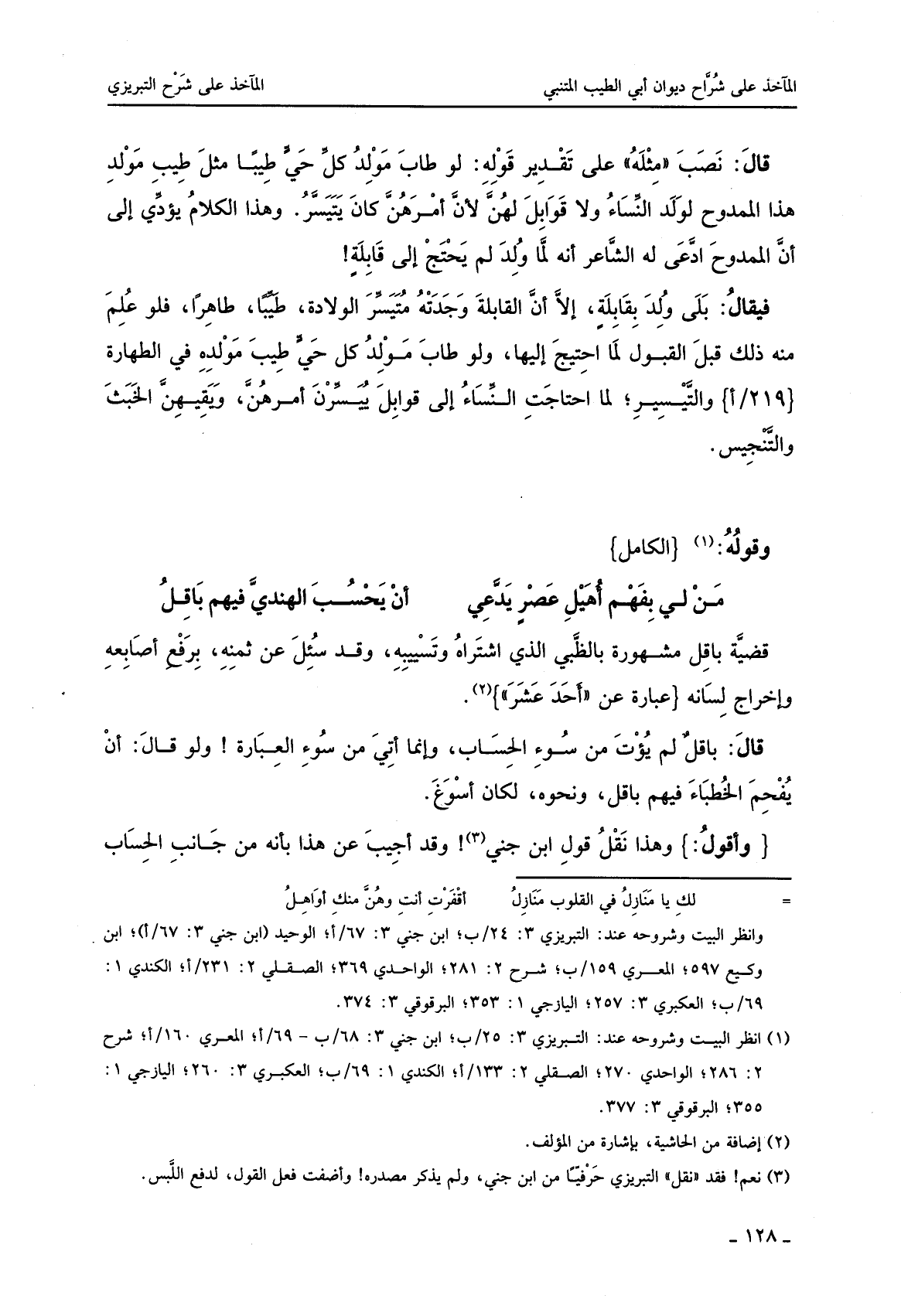 كتاب المآخذ على شراح ديوان أبي الطيب المتنبي (اسم الجزء: 3)