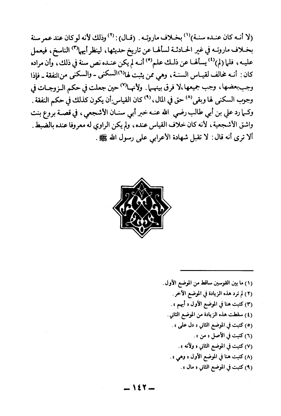 وَكَمَا رَدَّ عَلِيُّ بْنُ أَبِي طَالِبٍ - رَضِيَ اللَّهُ عَنْهُ - خَبَرَ أَبِي سِنَانٍ الْأَشْجَعِيِّ، فِي قِصَّةِ بِرْوَعَ بِنْتِ وَاشِقٍ الْأَشْجَعِيَّةِ، لِأَنَّهُ كَانَ خِلَافُ الْقِيَاسِ عِنْدَهُ، وَلَمْ يَكُنْ الرَّاوِي لَهُ مَعْرُوفًا عِنْدَهُ بِالضَّبْطِ. أَلَا تَرَى أَنَّهُ قَالَ: لَا تُقْبَلُ شَهَادَةُ الْأَعْرَابِيِّ عَلَى رَسُولِ اللَّهِ - صَلَّى اللَّهُ عَلَيْهِ وَسَلَّمَ -.