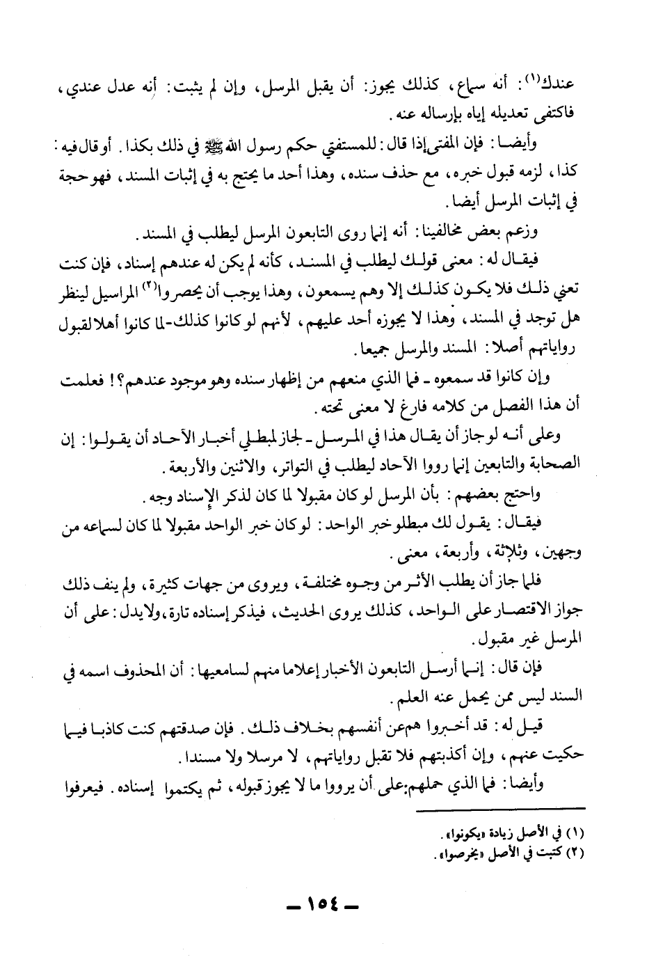 وَإِنْ كَانُوا قَدْ سَمِعُوهُ - فَمَا الَّذِي مَنَعَهُمْ مِنْ إظْهَارِ سَنَدِهِ وَهُوَ مَوْجُودٌ عِنْدَهُمْ؟ فَعَلِمْت أَنَّ هَذَا الْفَصْلَ مِنْ كَلَامِهِ فَارِغٌ لَا مَعْنَى تَحْتَهُ. وَعَلَى أَنَّهُ لَوْ جَازَ أَنْ يُقَالَ هَذَا فِي الْمُرْسَلِ - لَجَازَ لِمُبْطِلِي أَخْبَارِ الْآحَادِ أَنْ يَقُولُوا: إنَّ الصَّحَابَةَ وَالتَّابِعِينَ إنَّمَا رَوَوْا الْآحَادَ لِيُطْلَبَ فِي التَّوَاتُرِ، وَالِاثْنَيْنِ وَالْأَرْبَعَةِ.