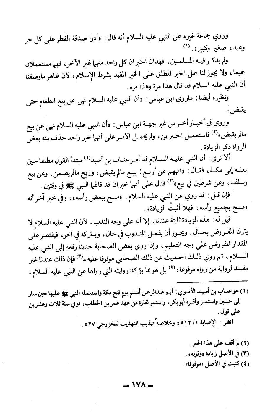 وَرُوِيَ فِي أَخْبَارٍ أُخَرَ مِنْ غَيْرِ جِهَةِ ابْنِ عَبَّاسٍ: «أَنَّ النَّبِيَّ - عَلَيْهِ السَّلَامُ - نَهَى عَنْ بَيْعِ مَا لَمْ يُقْبَضْ» فَاسْتَعْمَلَ الْخَبَرَيْنِ، وَلَمْ يُحْمَلْ الْأَمْرُ عَلَى أَنَّهُمَا خَبَرٌ وَاحِدٌ حَذَفَ مِنْهُ بَعْضُ الرُّوَاةِ ذِكْرَ الزِّيَادَةِ.