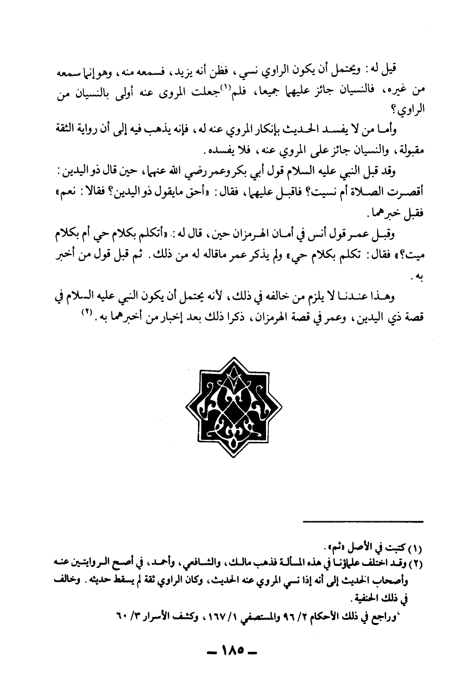وَهَذَا عِنْدَنَا لَا يَلْزَمُ مَنْ خَالَفَهُ فِي ذَلِكَ، لِأَنَّهُ يَحْتَمِلُ أَنْ يَكُونَ النَّبِيُّ - عَلَيْهِ السَّلَامُ - فِي قِصَّةِ ذِي الْيَدَيْنِ، وَعُمَرُ فِي قِصَّةِ الْهُرْمُزَانِ، ذَكَرَا ذَلِكَ بَعْدَ إخْبَارِ مَنْ أَخْبَرَهُمَا بِهِ.