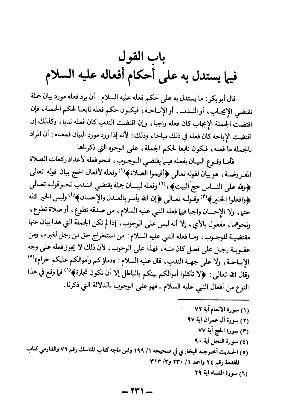 [بَابٌ الْقَوْلُ فِيمَا يُسْتَدَلُّ بِهِ عَلَى أَحْكَامِ أَفْعَالِهِ عَلَيْهِ السَّلَام]