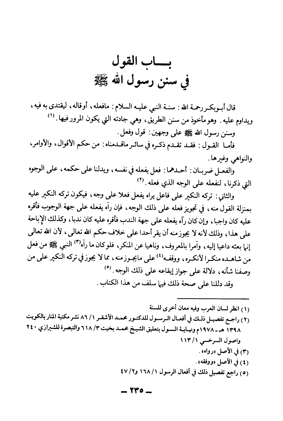 الْقَوْلُ فِي سُنَنِ رَسُولِ اللَّهِ - صَلَّى اللَّهُ عَلَيْهِ وَسَلَّمَ -