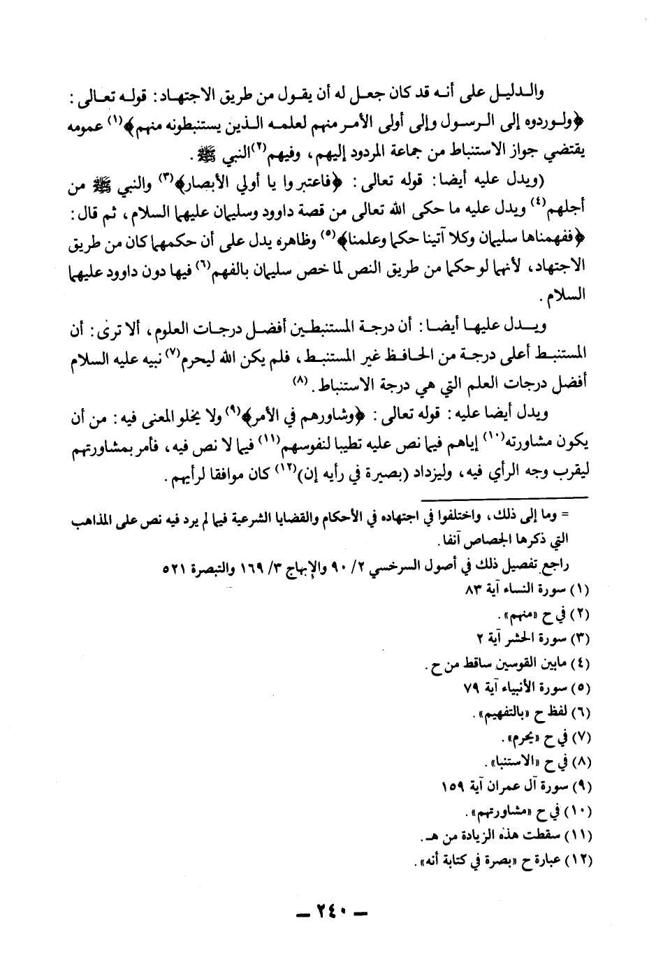 وَيَدُلُّ عَلَيْهَا أَيْضًا: أَنَّ دَرَجَةَ الْمُسْتَنْبِطِينَ أَفْضَلُ دَرَجَاتِ الْعُلُومِ، أَلَا تَرَى: أَنَّ الْمُسْتَنْبِطَ أَعْلَى دَرَجَةً مِنْ الْحَافِظِ غَيْرِ الْمُسْتَنْبِطِ، فَلَمْ يَكُنْ اللَّهُ لِيَحْرِمَ نَبِيَّهُ - عَلَيْهِ السَّلَامُ - أَفْضَلَ دَرَجَاتِ الْعِلْمِ الَّتِي هِيَ دَرَجَةُ الِاسْتِنْبَاطِ.