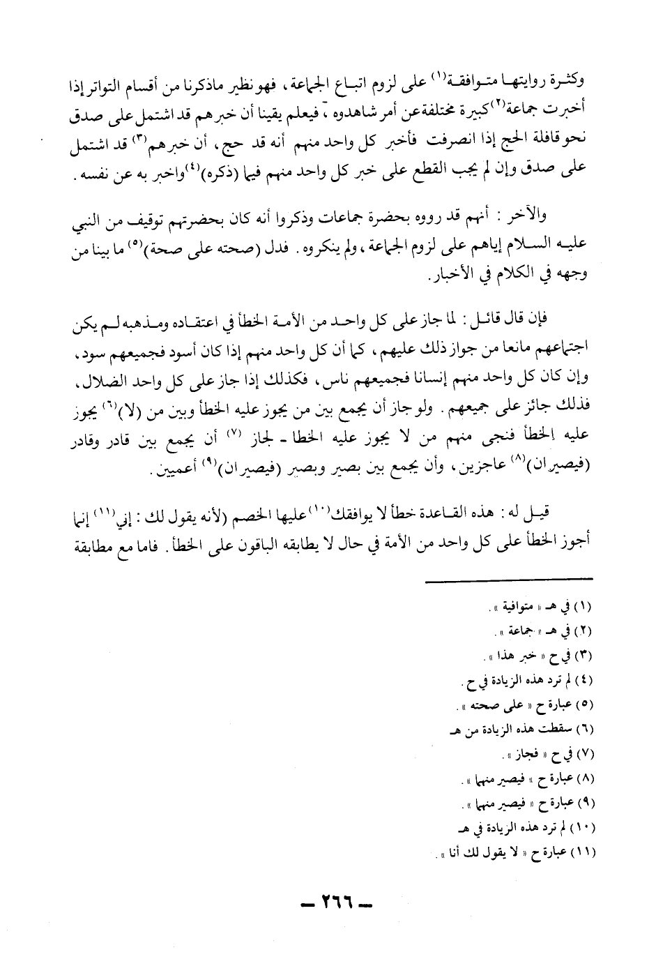 قِيلَ لَهُ: هَذِهِ الْقَاعِدَةُ خَطَأٌ لَا يُوَافِقُك عَلَيْهَا الْخَصْمُ (لِأَنَّهُ يَقُولُ لَك: إنِّي) إنَّمَا أُجَوِّزُ الْخَطَأَ عَلَى كُلِّ وَاحِدٍ مِنْ الْأُمَّةِ فِي حَالٍ لَا يُطَابِقُهُ الْبَاقُونَ عَلَى الْخَطَأِ.