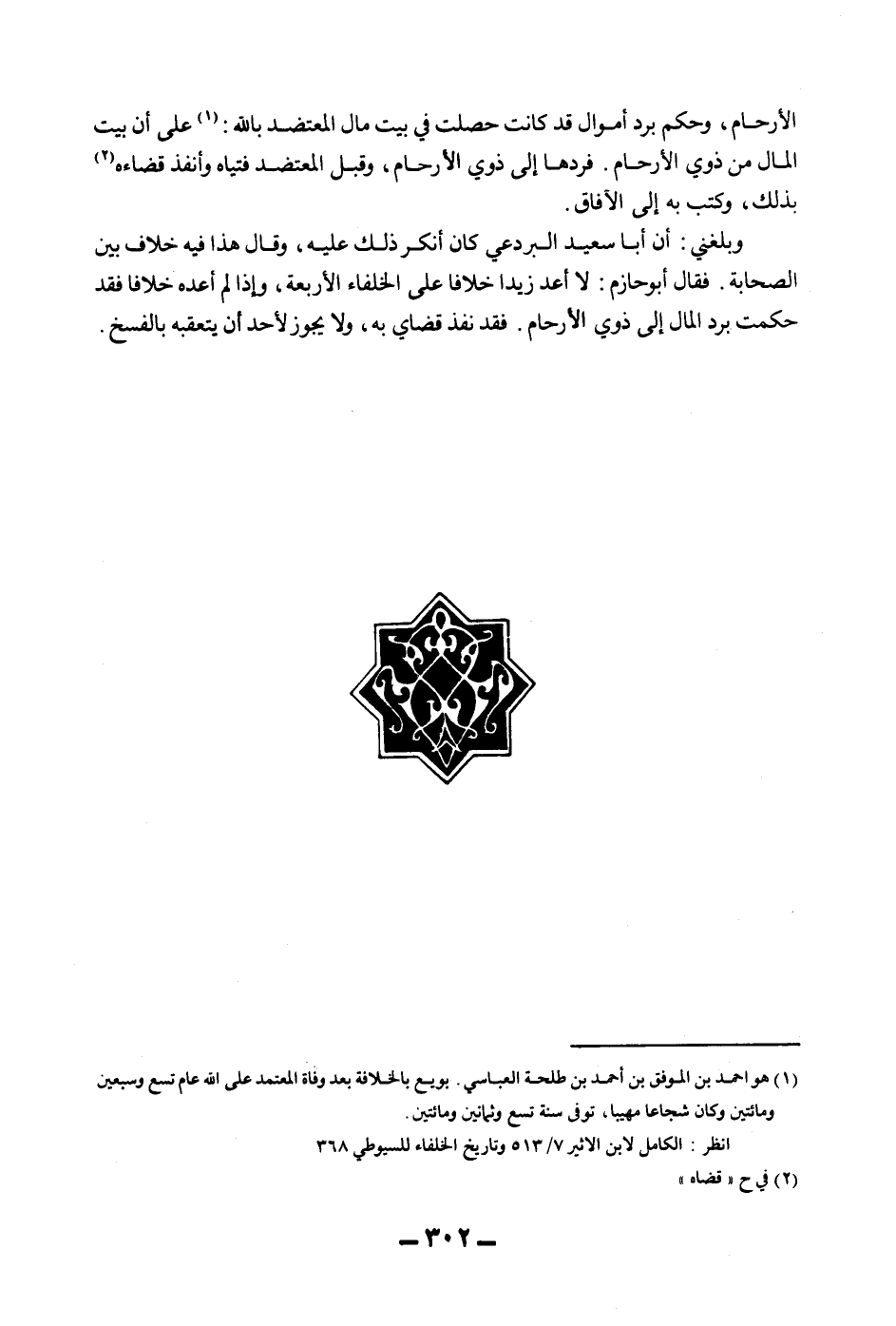 الْأَرْحَامِ، وَحَكَمَ بِرَدِّ أَمْوَالٍ قَدْ كَانَتْ حَصَلَتْ فِي بَيْتِ مَالِ الْمُعْتَضِدِ بِاَللَّهِ: عَلَى أَنَّ بَيْتَ الْمَالِ مِنْ ذَوِي الْأَرْحَامِ.