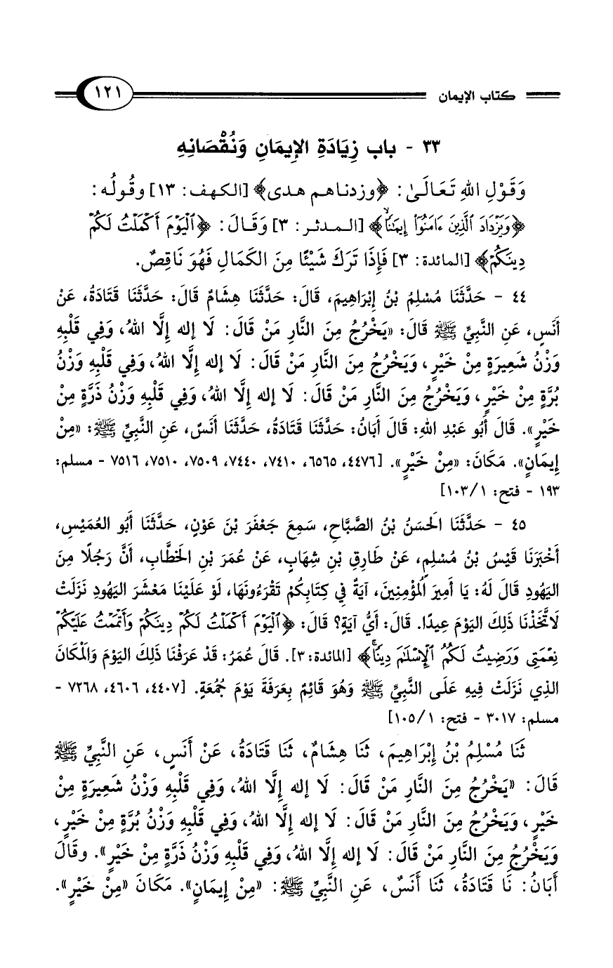 33 - باب زِيَادَةِ الإِيمَانِ وَنُقْصَانِهِ