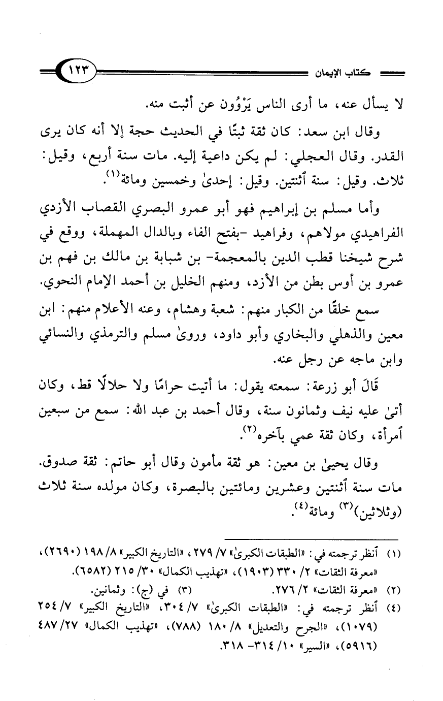 (¬4) انظر ترجمته في: "الطبقات الكبرى" 7/ 304، "التاريخ الكبير" 7/ 254 (1079)، "الجرح والتعديل" 8/ 180 (788)، "تهذيب الكمال" 27/ 487 (5916)، "السير" 10/ 314 - 318.