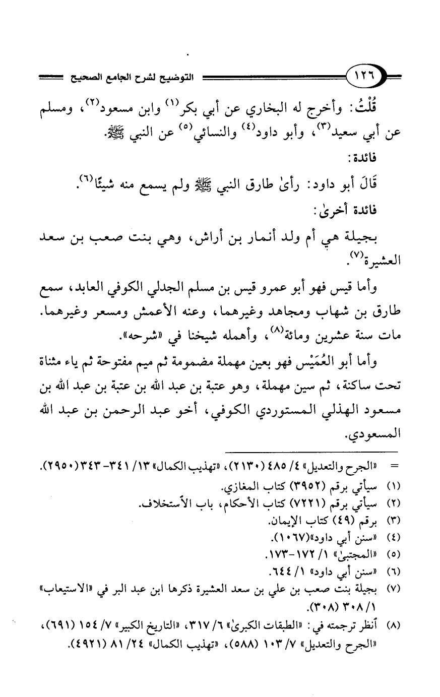 قُلْتُ: وأخرج له البخاري عن أبي بكر (¬1) وابن مسعود (¬2)، ومسلم عن أبي سعيد (¬3)، وأبو داود (¬4) والنسائي (¬5) عن النبي - صلى الله عليه وسلم -.