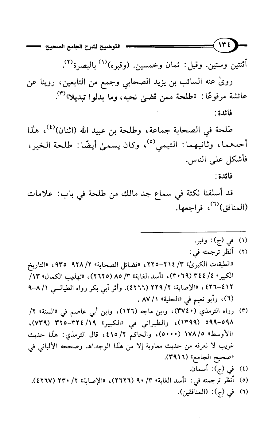 قد أسلفنا نكتة في سماع جد مالك من طلحة في باب: علامات (المنافق) (¬6)، فراجعها.