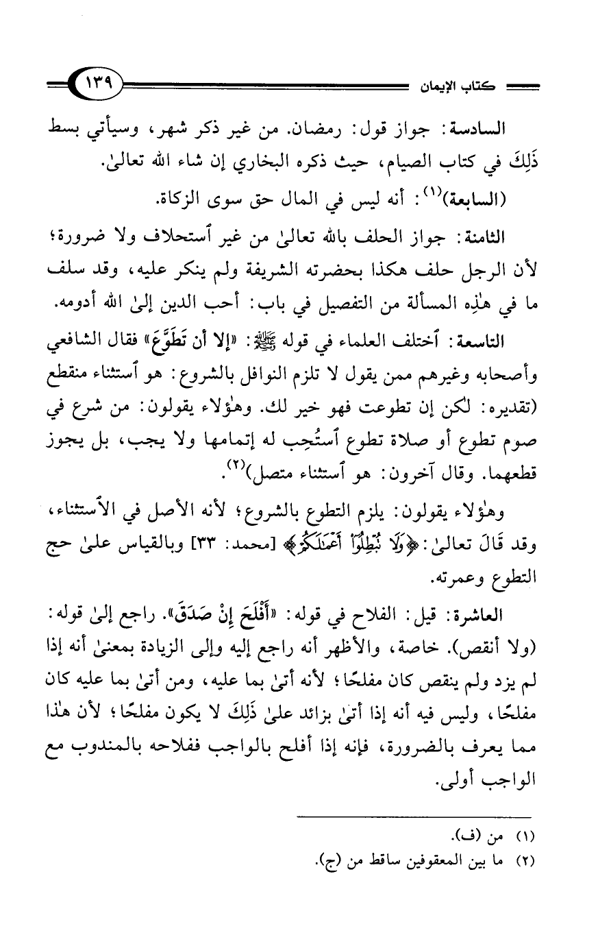 وهؤلاء يقولون: يلزم التطوع بالشروع؛ لأنه الأصل في الاستثناء، وقد قَالَ تعالى: {وَلَا تُبْطِلُوا أَعْمَالَكُمْ} [محمد: 33] وبالقياس على حج التطوع وعمرته.