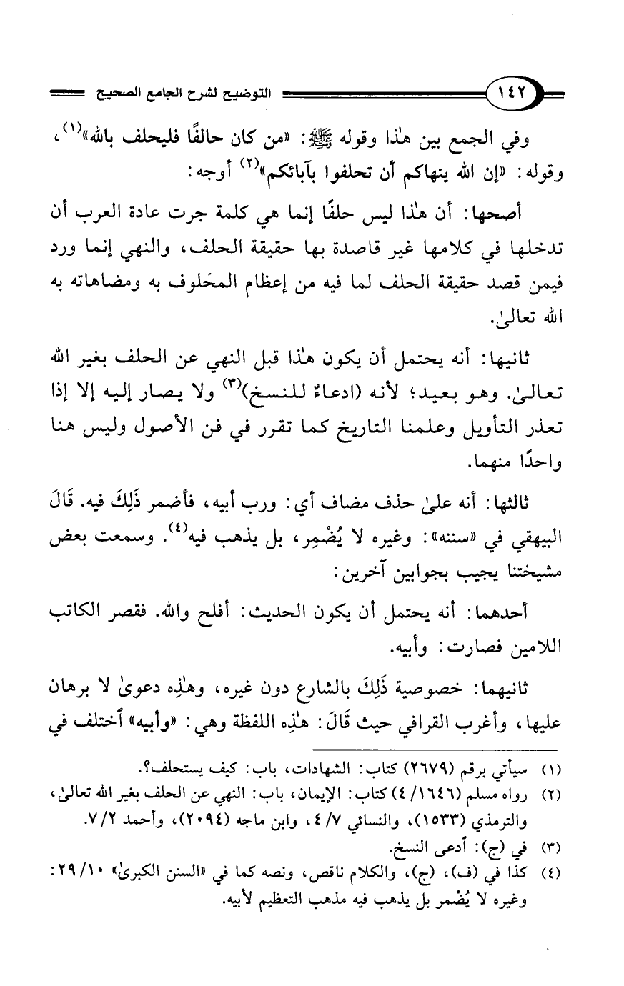 (¬2) رواه مسلم (1646/ 4) كتاب: الإيمان، باب: النهي عن الحلف بغير الله تعالى، والترمذي (1533)، والنسائي 7/ 4، وابن ماجه (2094)، وأحمد 2/ 7.