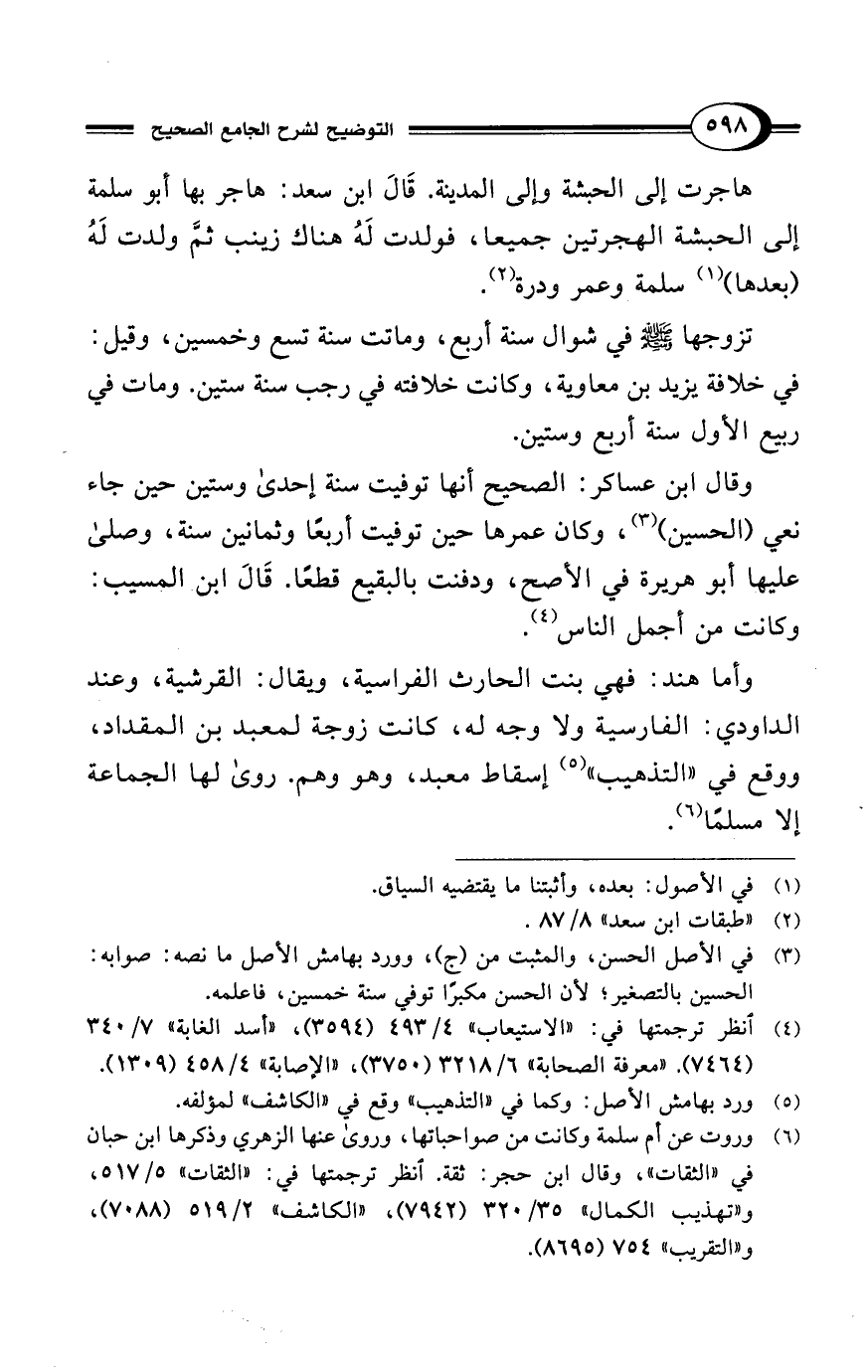 (¬4) انظر ترجمتها في: "الاستيعاب" 4/ 493 (3594)، "أسد الغابة" 7/ 340 (7464). "معرفة الصحابة" 6/ 3218 (3750)، "الإصابة" 4/ 458 (1309).