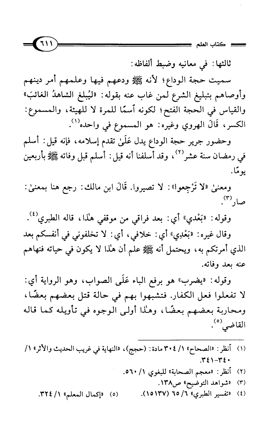 وقوله: "يضرب" هو برفع الباء عَلَى الصواب، وهو الرواية أي: لا تفعلوا فعل الكفار. فتشبهوا بهم في حالة قتل بعضهم بعضًا، ومحاربة بعضهم بعضًا، وهذا أولى الوجوه في تأويله كما قاله القاضي (¬5).