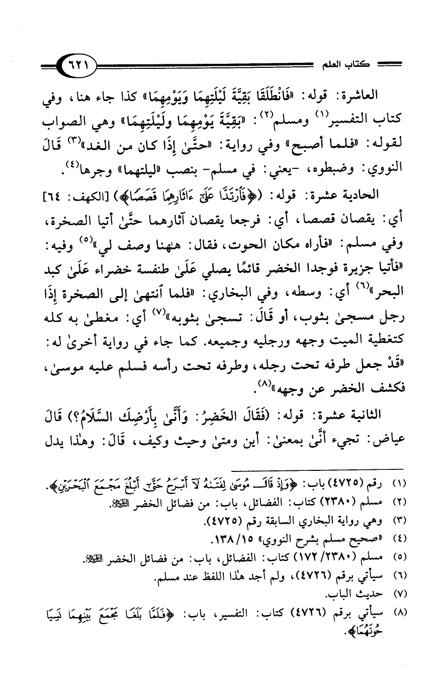 (¬1) رقم (4725) باب: {وَإِذْ قَالَ مُوسَى لِفَتَاهُ لَا أَبْرَحُ حَتَّى أَبْلُغَ مَجْمَعَ الْبَحْرَيْنِ}.