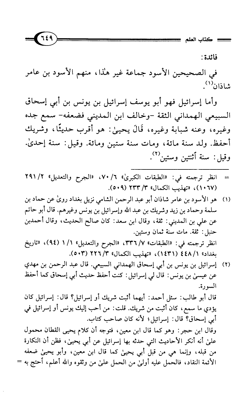 (¬2) إسرائيل بن يونس بن أبي إسحاق الهمداني السبيعي. قال عبد الرحمن بن مهدي عن عيسى بن يونس: قال لي إسرائيل: كنت أحفظ حديث أبي إسحاق كما أحفظ السورة.