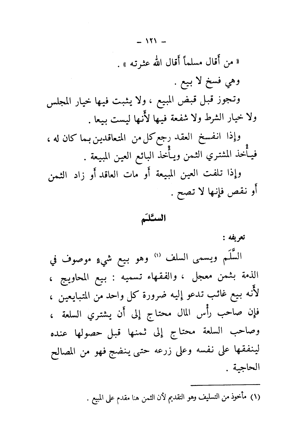 (1) مأخوذ من التسليف وهو التقديم لان الثمن هنا مقدم على المبيع.