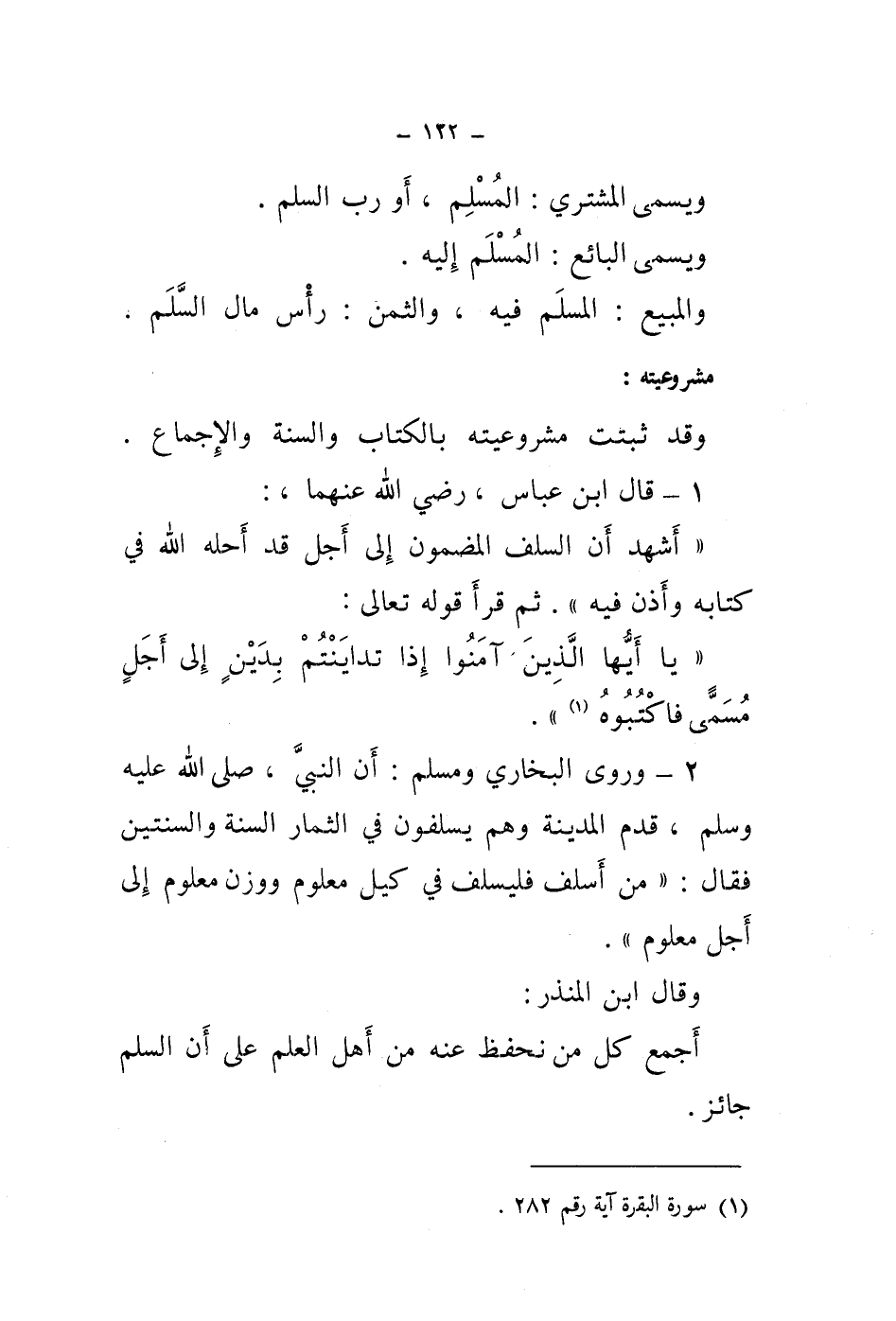1 - قال ابن عباس، رضي الله عنهما،: " أشهد أن السلف المضمون إلى أجل قد أحله الله في كتابه وأذن فيه ".