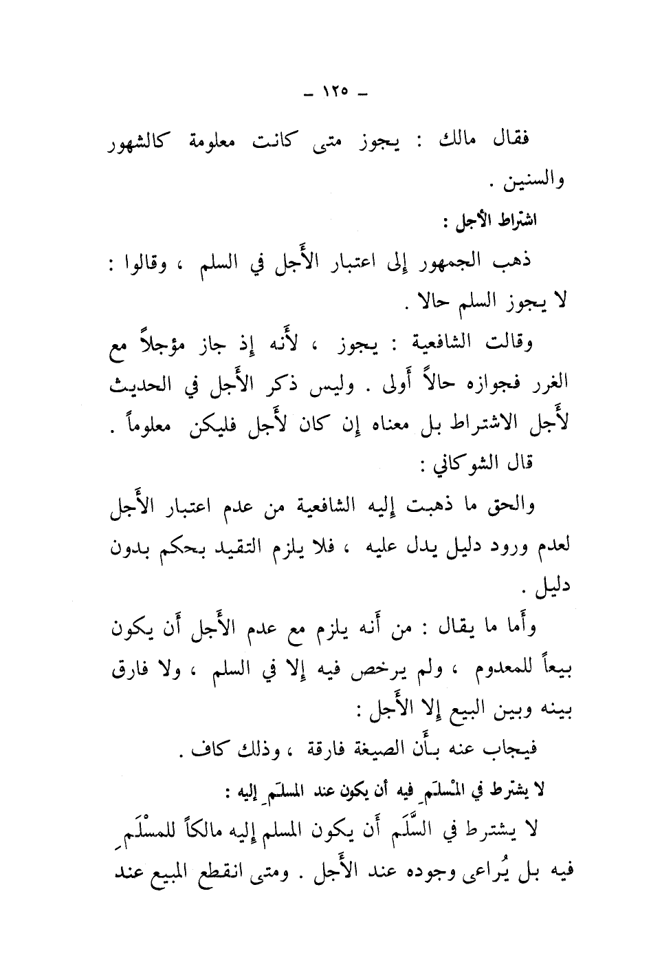 ذهب الجمهور إلى اعتبار الاجل في السلم، وقالوا: لا يجوز السلم حالا.