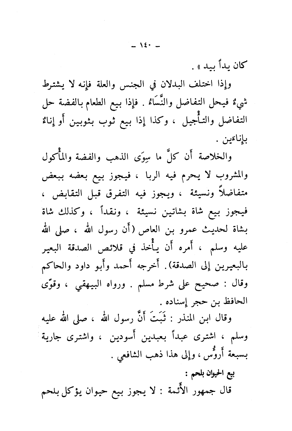 بيع الحيوان بلحم: قال جمهور الائمة: لا يجوز بيع حيوان يؤكل بلحم