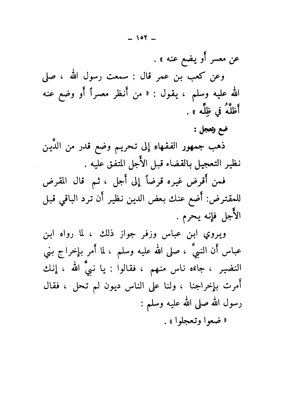 ويروي ابن عباس وزفر جواز ذلك، لما رواه ابن عباس أن النبي، صلى الله عليه وسلم، لما أمر بإخراج بني النضير، جاءه ناس منهم، فقالوا: يا نبي الله، إنك أمرت بإخراجنا، ولنا على الناس ديون لم تحل، فقال رسول الله صلى الله عليه وسلم: " ضعوا وتعجلوا ".