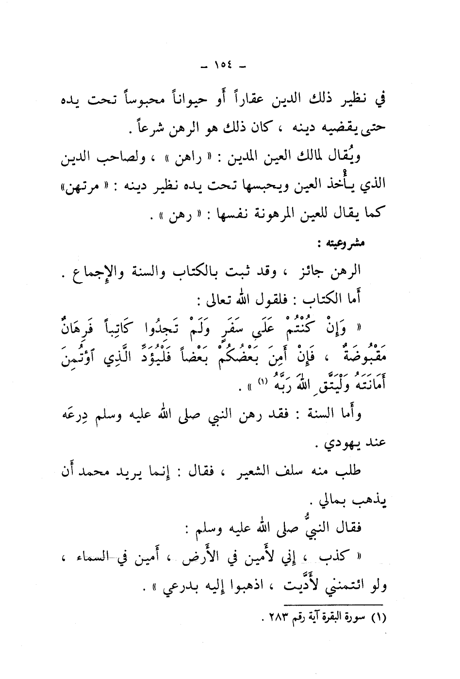 أما الكتاب: فلقول الله تعالى: " وإن كنتم على سفر ولم تجدوا كاتبا فرهان مقبوضة، فإن أمن بعضكم بعضا فليؤد الذي أوتمن أمانته وليتق الله ربه (1) ".