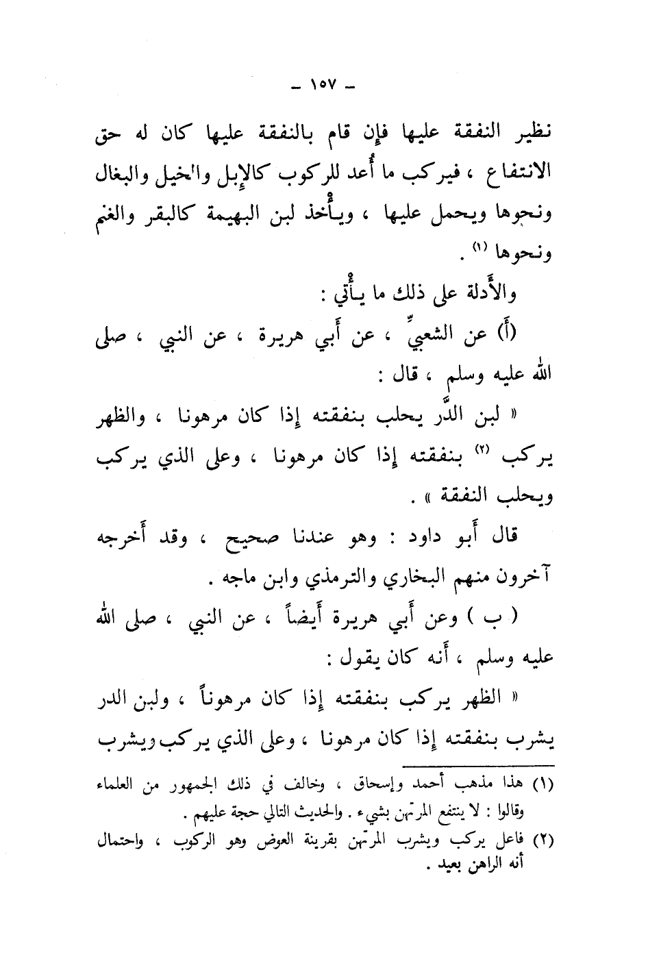 (ب) وعن أبي هريرة أيضا، عن النبي، صلى الله عليه وسلم، أنه كان يقول: " الظهر يركب بنفقته إذا كان مرهونا، ولبن الدر يشرب بنفقته إذا كان مرهونا، وعلى الذي يركب ويشرب