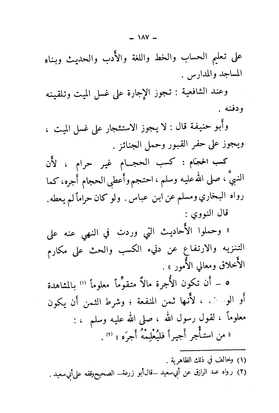 5 - أن تكون الاجرة مالا متقوما معلوما (1) بالمشاهدة أو الوصف، لانها ثمن المنفعة، وشرط الثمن أن يكون معلوما، لقول رسول الله، صلى الله عليه وسلم،: " من استأجر أجيرا فليعلمه أجره " (2) .