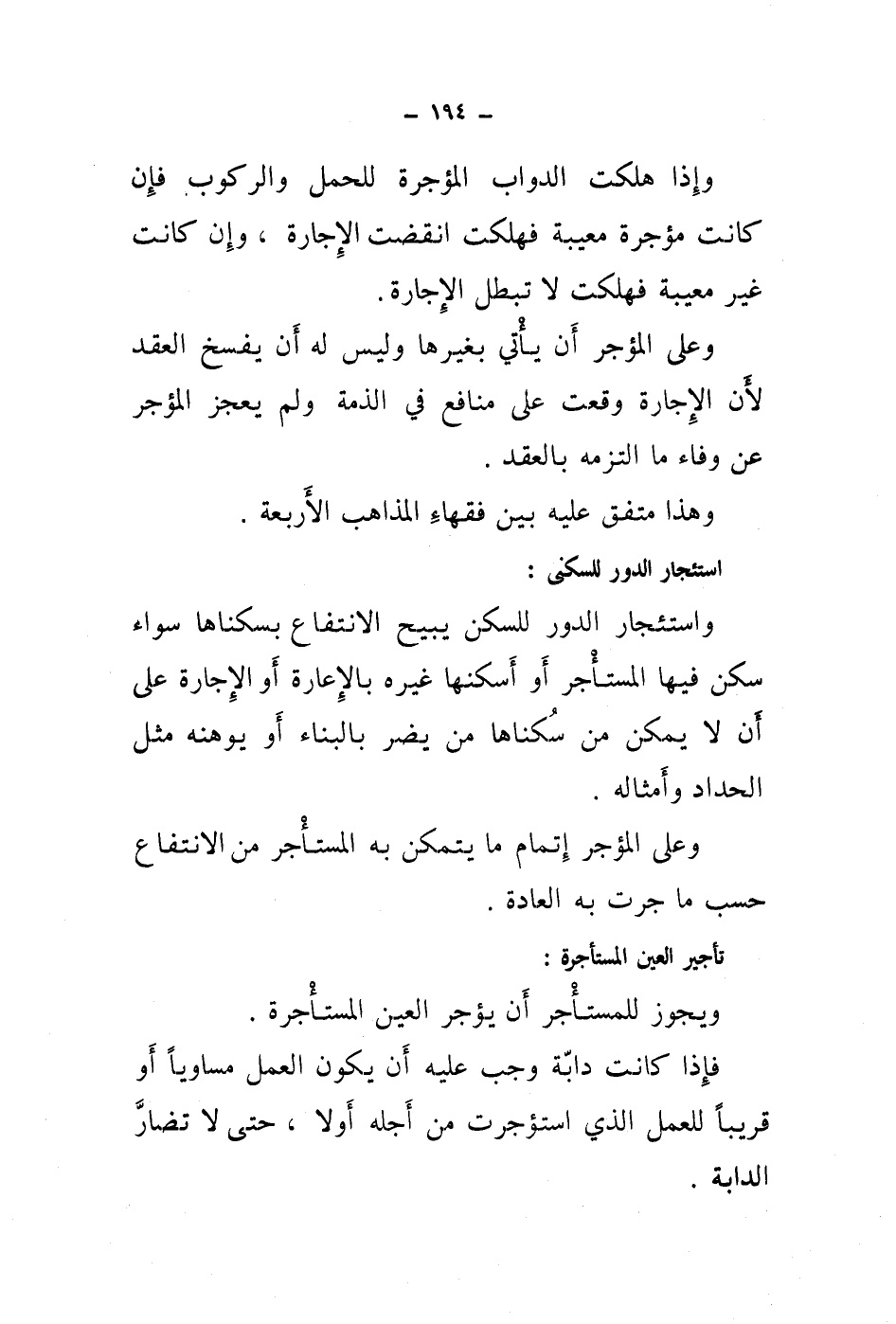 واستئجار الدور للسكن يبيح الانتفاع بسكناها سواء