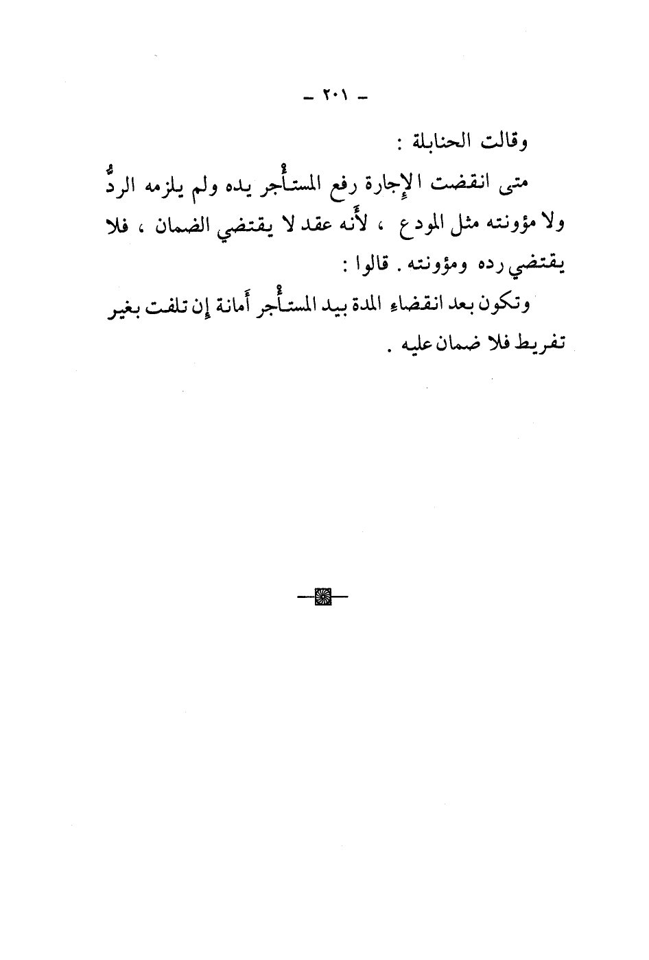 قالوا: وتكون بعد انقضاء المدة بيد المستأجر أمانة إن تلفت بغير تفريط فلاضمان عليه.