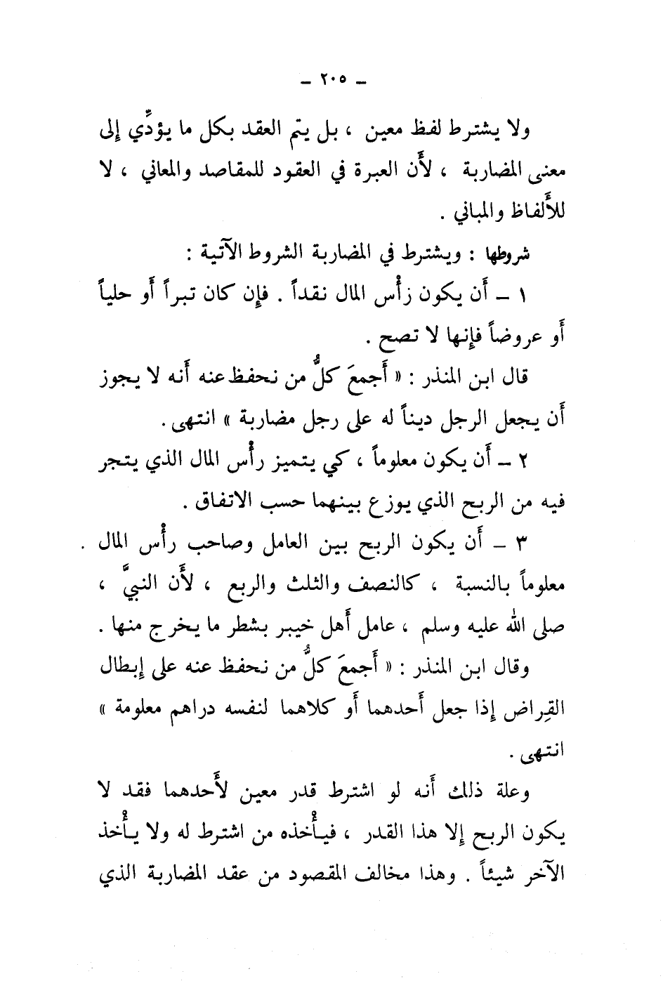 2 - أن يكون معلوما، كي يتميز رأس المال الذي يتجر فيه من الربح الذي يوزع بينهما حسب الاتفاق.