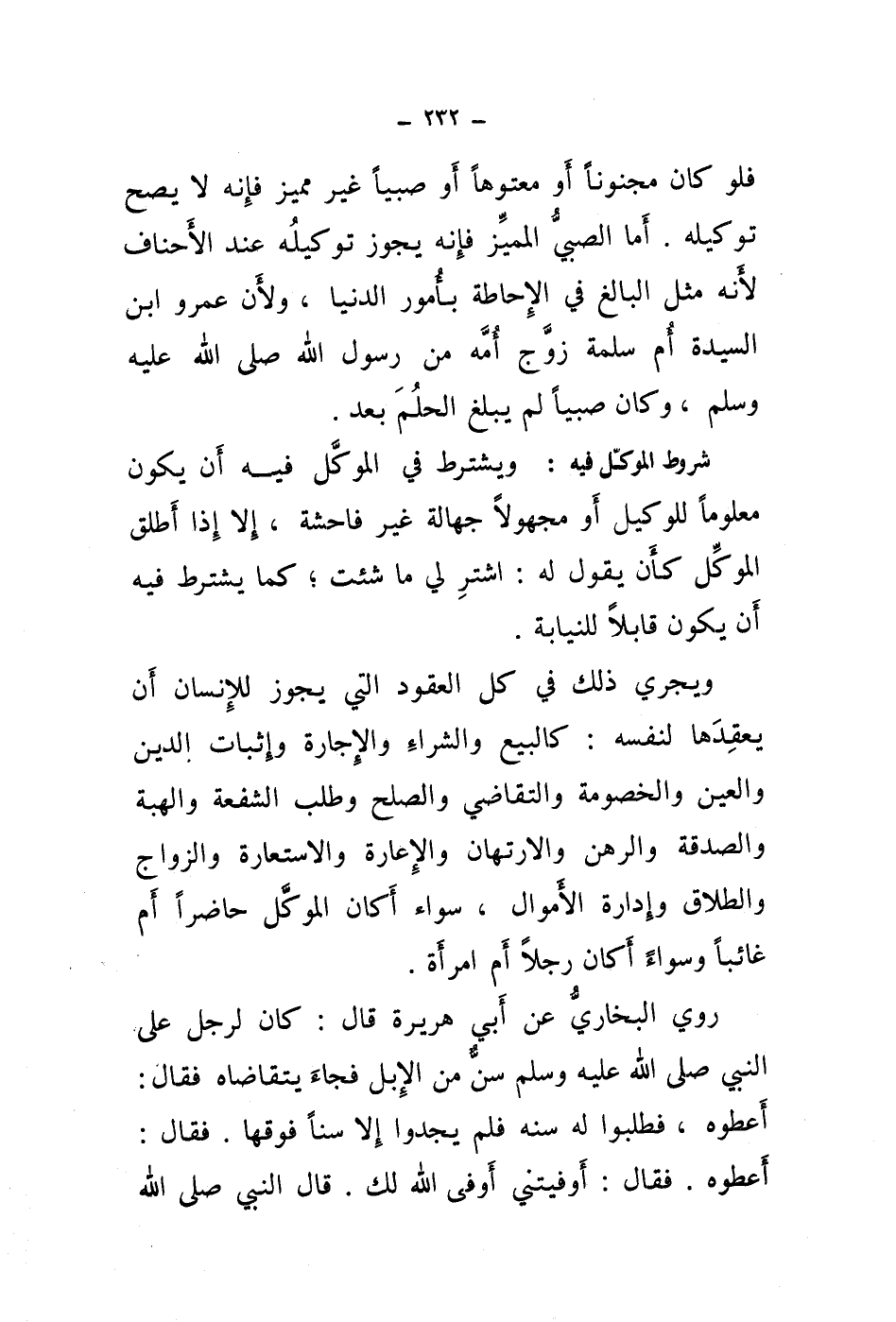 أما الصبي المميز فإنه يجوز توكيله عند الاحناف لانه مثل البالغ في الاحاطة بأمور الدنيا، ولان عمرو ابن السيدة أم سلمة زوج أمه من رسول الله صلى الله عليه وسلم، وكان صبيا لم يبلغ الحلم بعد.