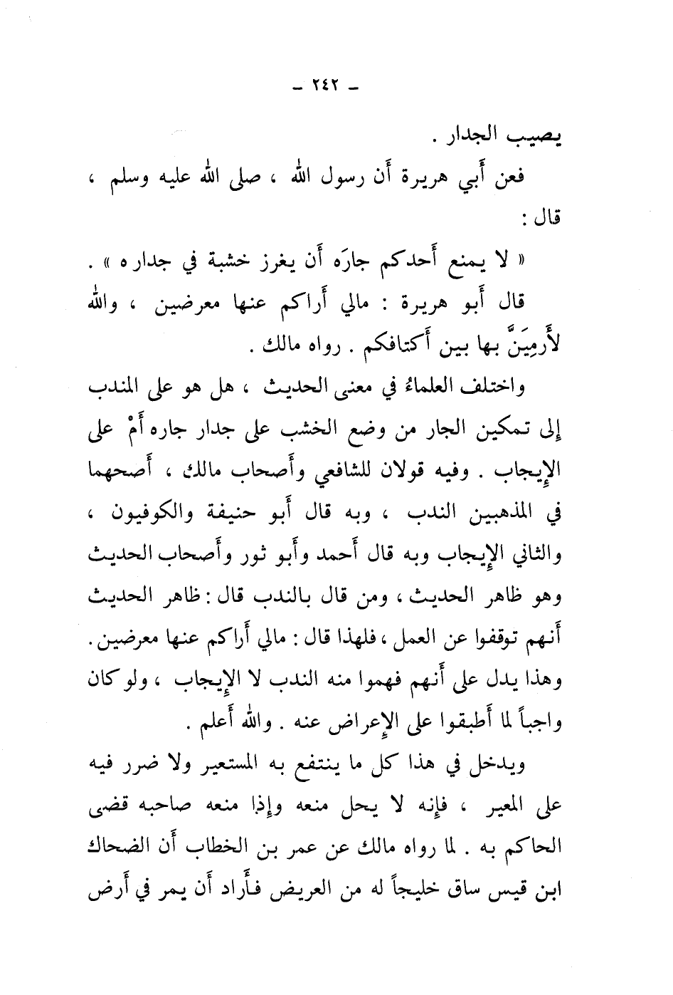 فعن أبي هريرة أن رسول الله، صلى الله عليه وسلم، قال: " لايمنع أحدكم جاره أن يغرز خشبة في جداره ".
