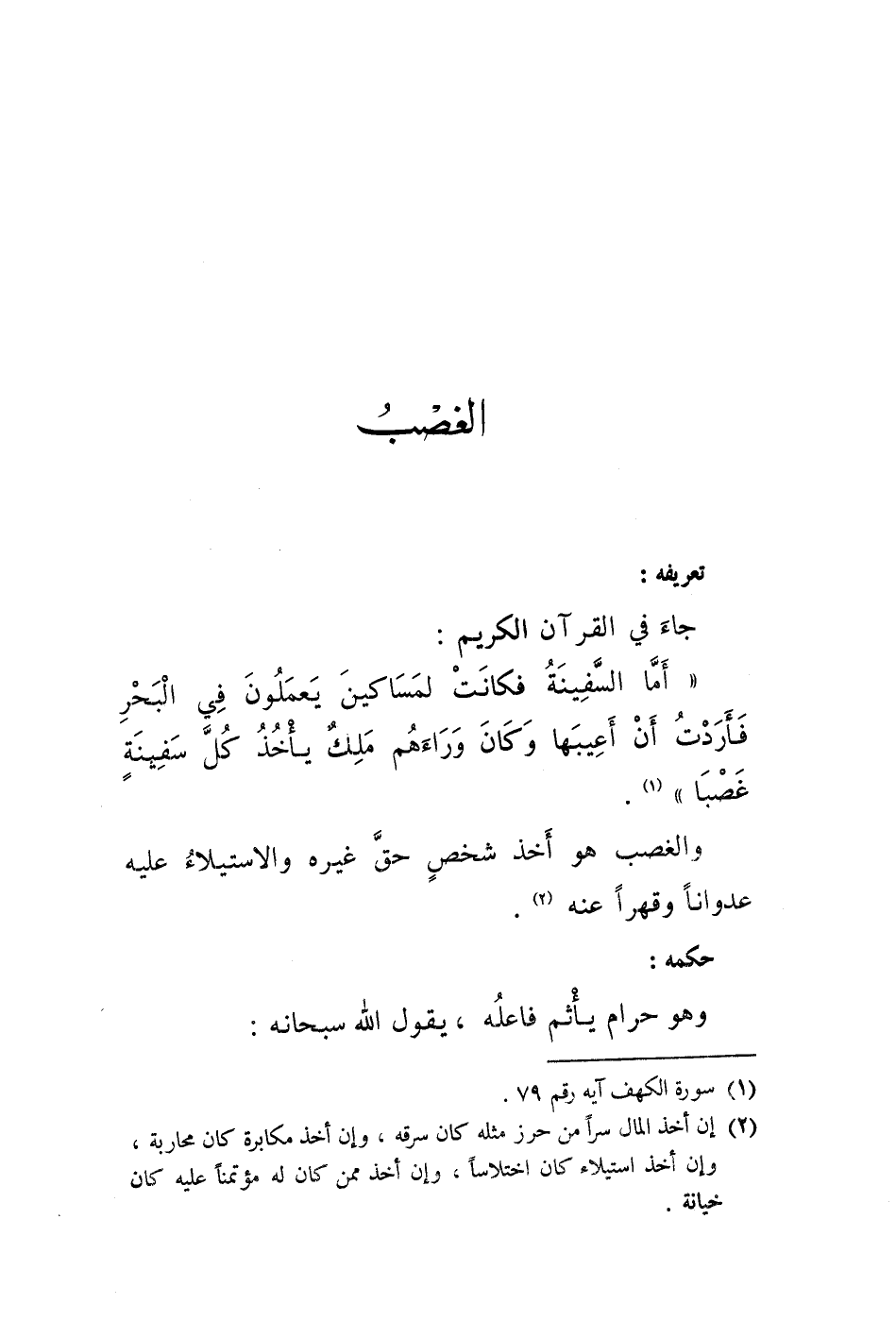 تعريفه: جاء في القرآن الكريم: " أما السفينة فكانت لمساكين يعملون في البحر فأردت أن أعيبها وكان وراءهم ملك يأخذ كل سفينة غصبا " (1) .