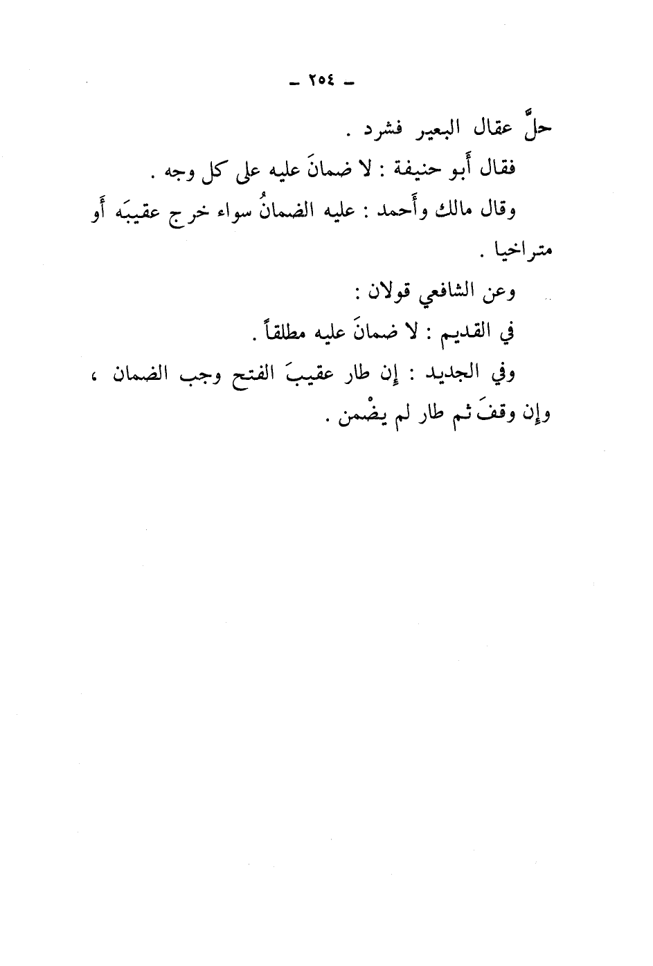 وعن الشافعي قولان: في القديم: لا ضمان عليه مطلقا.