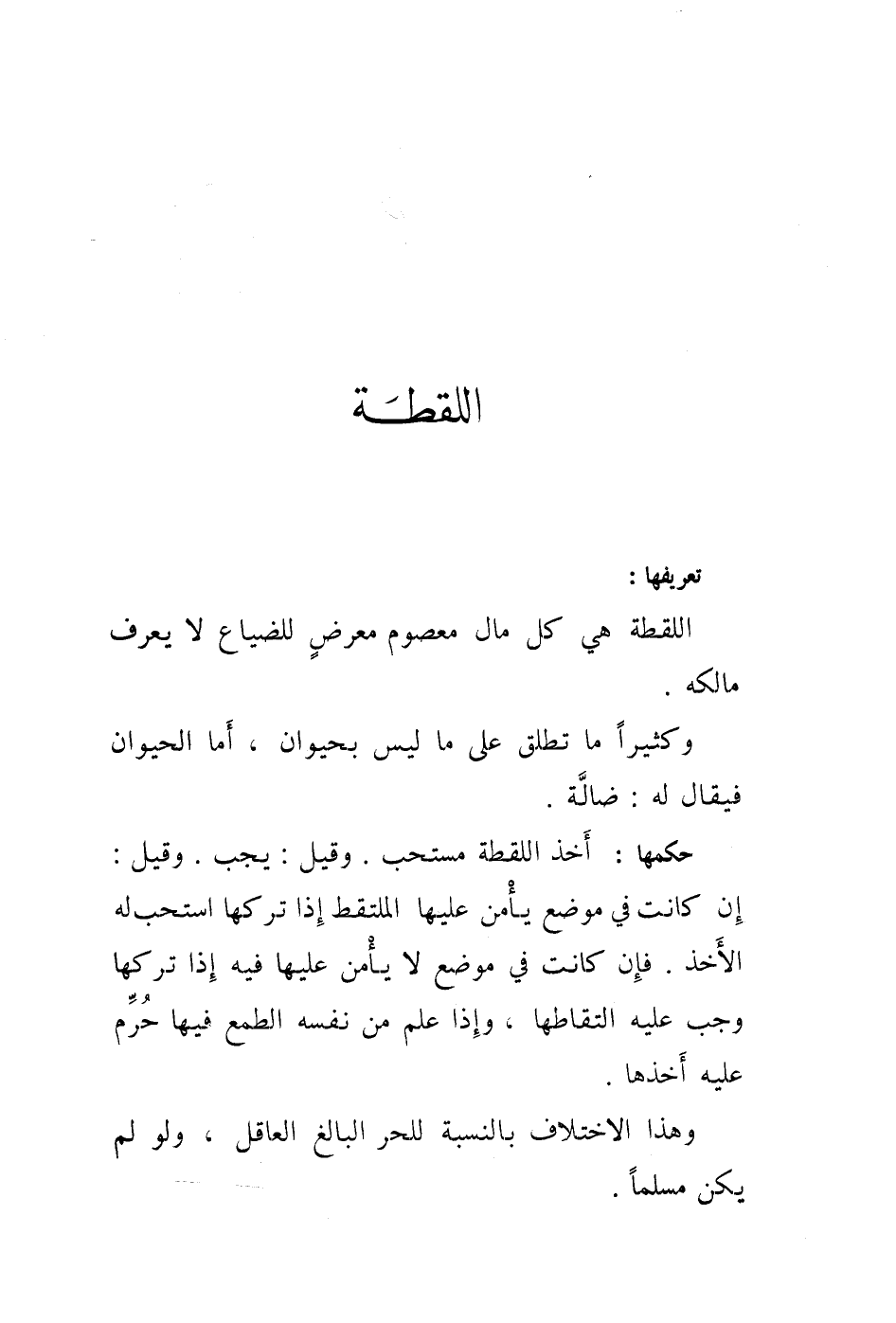 تعريفها: اللقطة هي كل مال معصوم معرض للضياع لايعرف مالكه.