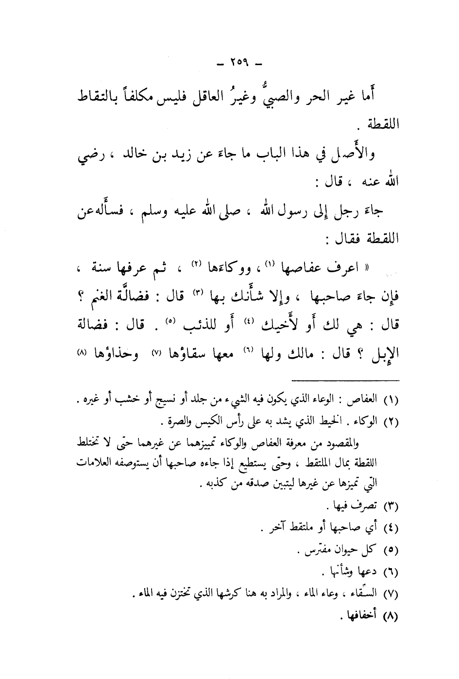 (1) العفاص: الوعاء الذي يكون فيه الشئ من جلد أو نسيج أو خشب أو غيره.