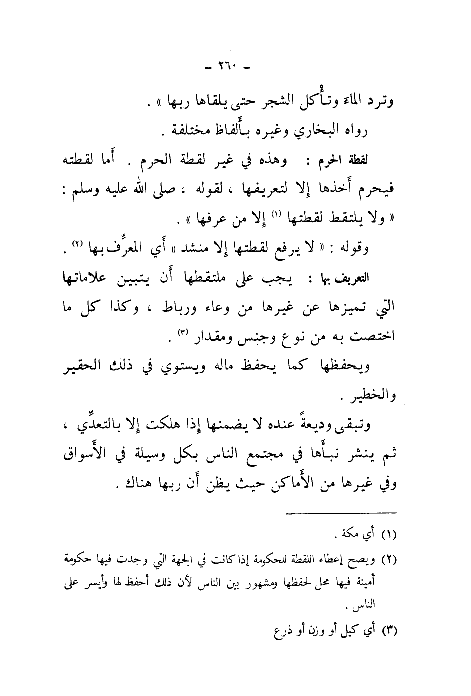 التعريف بها: يجب على ملتقطها أن يتبين علاماتها التي تميزها عن غيرها من وعاء ورباط، وكذا كل ما اختصت به من نوع وجنس ومقدار (3) .