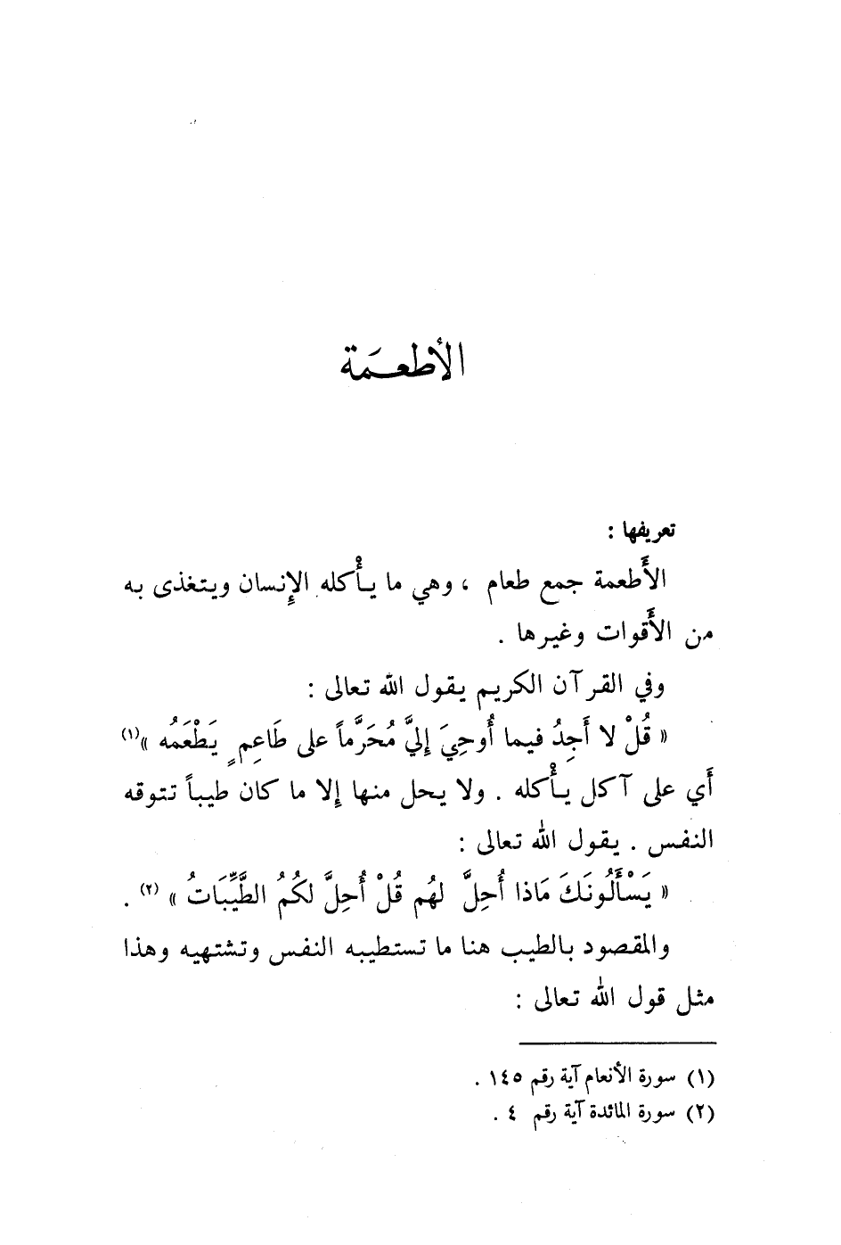 تعريفها: الأطعمة جمع طعام، وهي ما يأكله الانسان ويتغذى به من الاقوات وغيرها.